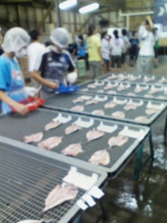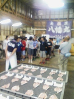 各自、名前を書いたプレートの上に置き、乾燥をしてもらいます。2組と1組が交替して、また作業に取り組みます。
