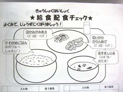 (給食試食会があったため、給食写真を撮り忘れましたので、クラスに渡している掲載しています。)