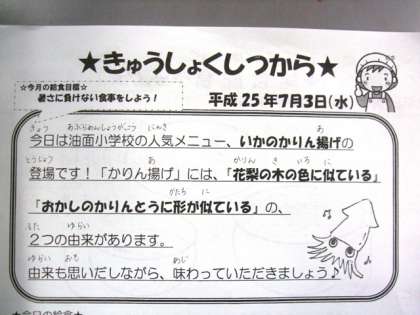 平成25年7月3日(水) 今日の給食