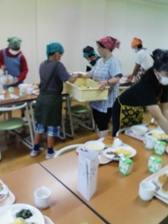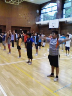 3日目の朝を迎えました。ラジオ体操をしています。そして、すぐに食事係の子どもたちは、朝食の準備にとりかかります。
