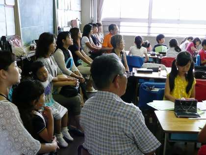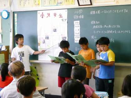 作成した「安全マップ」の発表会です。ご協力くださった地域の皆様、発表会に参加してくださった保護者の方々、ご協力ありがとうございました。
