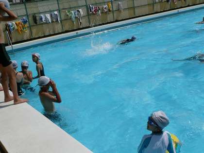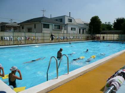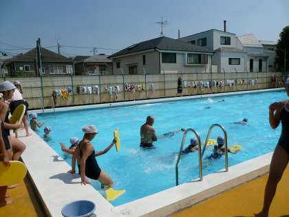 高学年は自分で「クロールを練習したい」「平泳ぎの足を練習したい」と課題を設定し、コースに分かれて練習に取り組んでいます。
