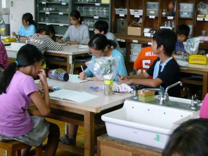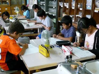 植物と酸素・二酸化炭素の関係を実験を通して確かめます。予想をしっかりと記入し、実験の手順を確認しています。