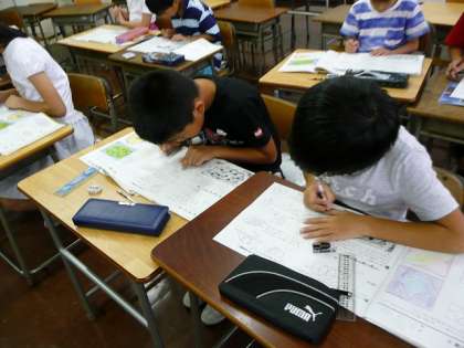 「円と球」の学習も最後です。今日はコンパスを活用して、地図の中から宝のありかをさがします。