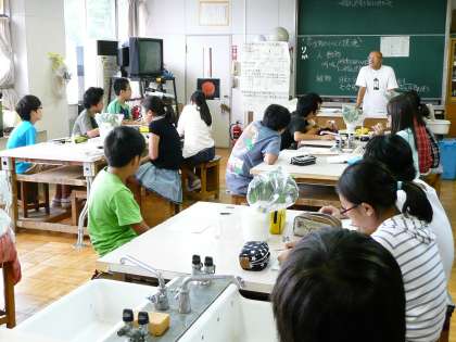 「生物のくらしと環境」の学習です。実験結果から分かることを発表しています。