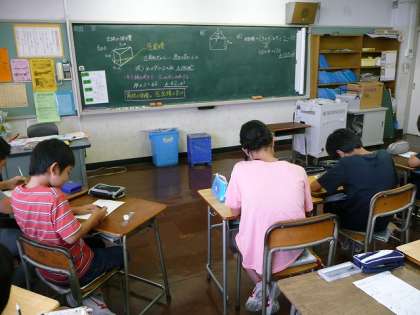 6年生は体積の学習に入りました。今日は「角柱の体積」の求め方を学び、練習問題に集中して取り組んでいます。