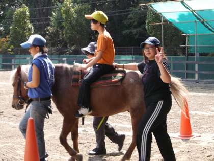 子どもたちはとても楽しそうにポニーに揺られていました。
