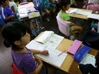 10より大きい足し算や引き算をしています。たくさん手があがり、元気に発表しています。