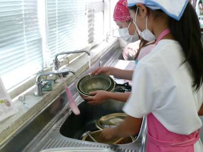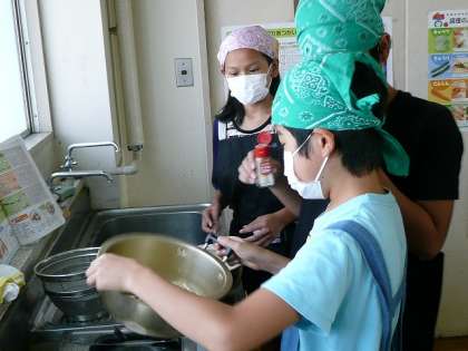 今日はポテトサラダを作りました。班で協力しながら、作業を一つ一つ確認しています。
