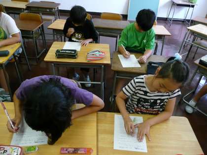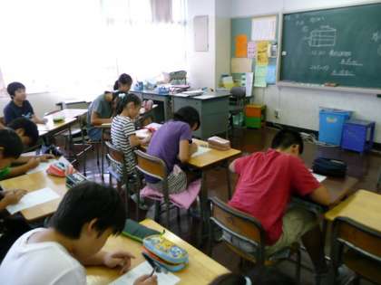 「倍数と約数」の学習のまとめです。これまでの学習を振り返り、確かめ問題に慎重に取り組んでいます。