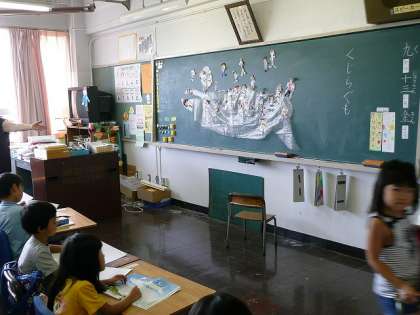 大きな「くじらぐも」が黒板に!素敵な雲に向かって、どんなことを言いたいのかな?