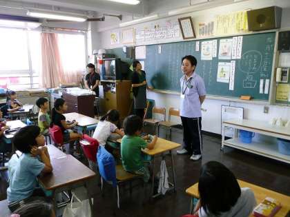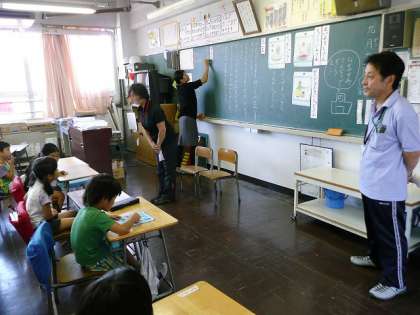 「ありがとう」の授業です。学校でいつもお世話になっている用務主事さんにお話を聞きました。みんな興味津々です。