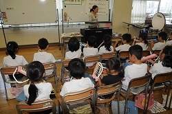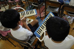 けん盤ハーモニカを使い合奏を行っています。指使いに気をつけながら、周りの友達の音を聞き練習をしています。