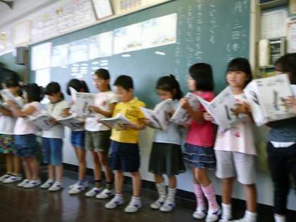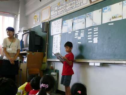 選んだ場面ごとに分かれて、音読練習の後、発表しました。役割を分けて読むグループもあり、それぞれが雰囲気を出そうと努力していました。