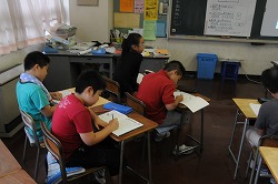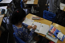 面積の求め方についてまとめのプリントを使い一つ一つ振り返っています。
