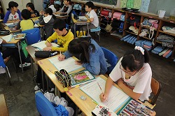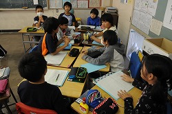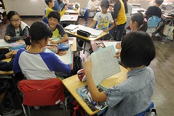 討論会を開き班ごとで発表をする時の工夫や聞くために必要なことを考えながら行っています。