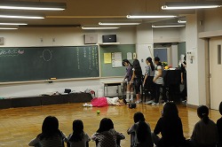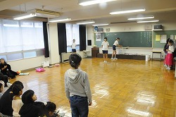 今まで練習をした劇の発表をしています。二班に分け、それぞれの発表をみて気づいたことや感想を述べています。