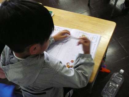漢字の練習に取り組んでいます。一字一字、ゆっくり丁寧に書いています。