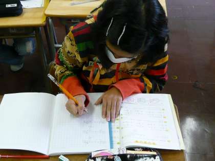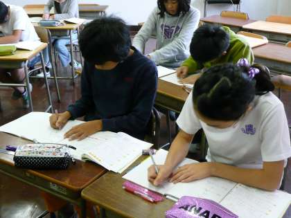 帯分数÷整数の計算方法を考えています。かけ算のときのことを思い出しながら、進めています。