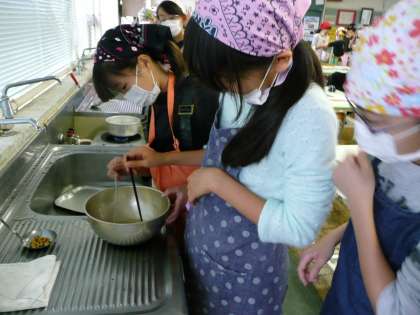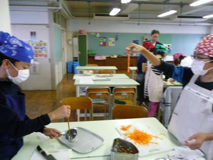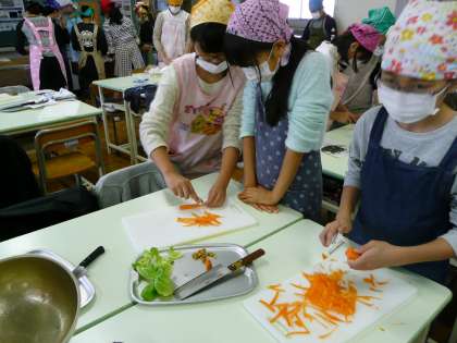 にんじんのサラダを作っています。ドレッシングも自分達で作ります。