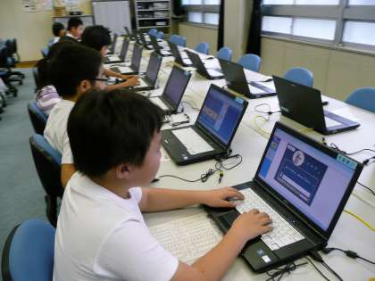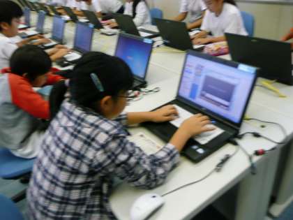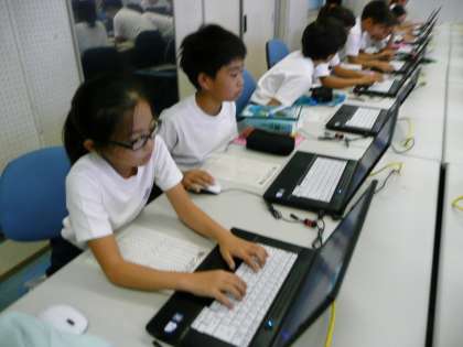 ICT支援員の先生の指導日です。キーボード入力の練習に一生懸命に取り組んでいます。