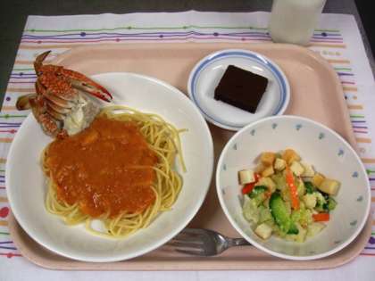 渡り蟹のクリームスパゲティーは、去年新メニューとして登場しました。時期が限られているため1度しか実施していなかったのですが、5年生はよく覚えていたようで「かにが入ったスパゲティーが食べたい!」とリクエストにあがりました。