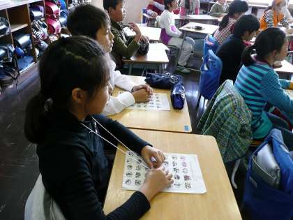 前回の学習を復習しながら、ワークシートを使って学習をすすめています。