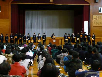 最後は各班の話し合った内容を、中学生がそれぞれ発表してくれました。閉会式も、第四中学校の生徒会のみなさんが行ってくれました。いろいろな人の意見を聞き、いじめ問題について考えを深めた1日だったと思います。