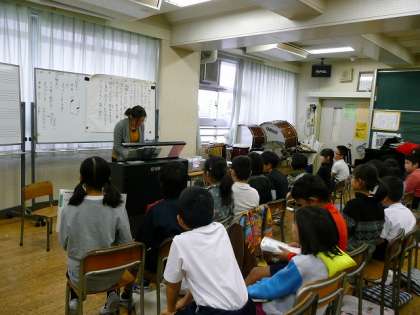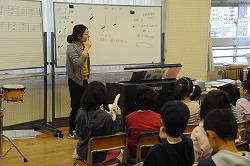 スタッカートを意識して歌っています。友達同士で聞き合い、アドバイスもしていました。