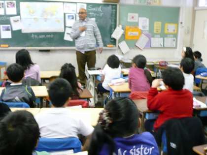 いろいろな国の生活について話を聞かせてもらいました。「え〜!」と、驚きの声が何度も教室からわき起こっていました。
