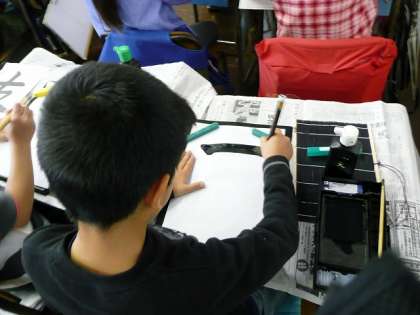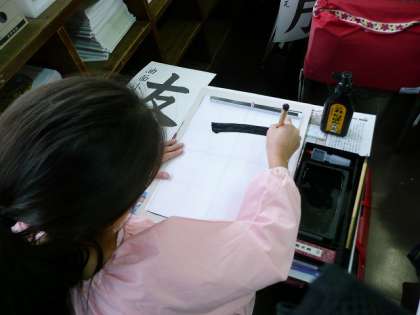 書き初めの練習です。大きな用紙に書くため、一文字一文字に力が入ります。