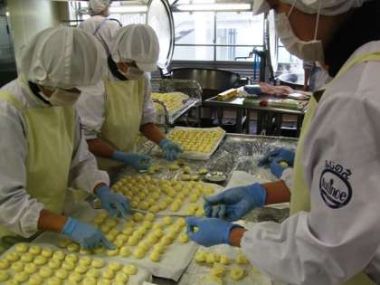 給食ではかぼちゃをたっぷり入れたほうとうと、かぼちゃを練り込んだ白玉を作りました。白玉はかぼちゃの鮮やかな黄色が引き立ち、こども達も美味しく食べていました。