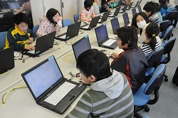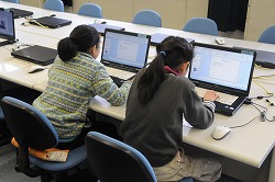 コンピューターを使い、自分の自己紹介を兼ねたクイズシートを作っています。