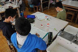 塩とミョウバンの溶けかたについて学習をしています。どのような工夫をするとものが溶けやすくなる、実際におこない考えています。