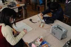 電気のはたらきで熱が生まれるのか装置を使って実験をしています。