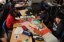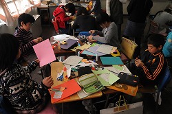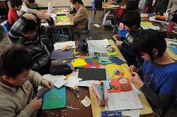 6年生に送るメッセージカードを作っています。
