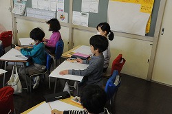 今年で一番頑張ったことは何か考えて、その様子を絵に描いています。