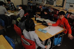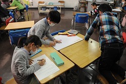 お楽しみ会の出し物を子どもたちが班ごとに分かれ考えています。
