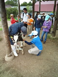 無事に滝沢牧場に到着!牛の乳しぼりをしたり子牛の心臓の音を聞かせてもらったりと、貴重な体験をしました。