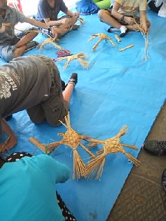 午後は、藍染め体験・わら細工体験(どちらかを選択)をしました。とても素敵な作品に仕上がりました。