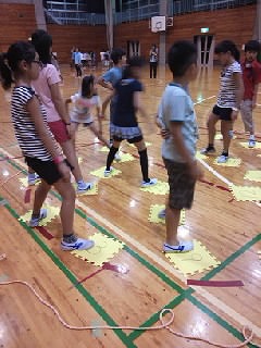 夕食の後は、チームで協力して目標を達成する‘冒険プログラム’です。歓声をあげて楽しんでいます♪
