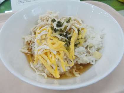 鶏飯(けいはん)・糸寒天のごま酢和え・黒糖大豆・牛乳