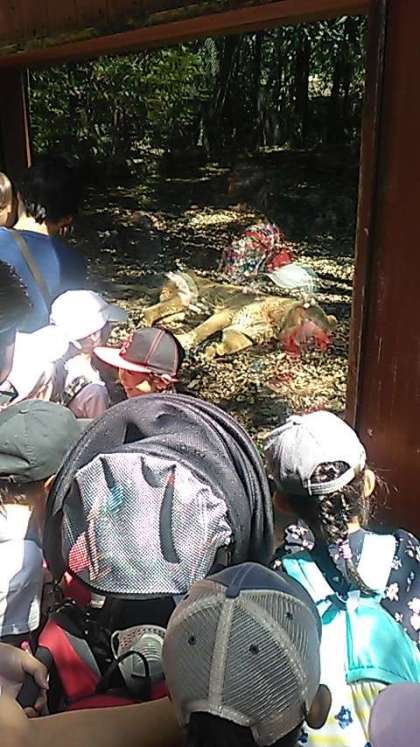午前中はみんなで一緒に行動します。虎やライオンも見ました。