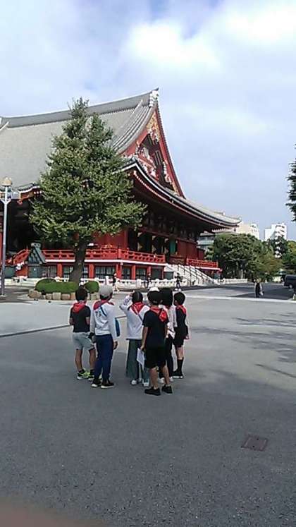 ボランティアガイドさんの案内で浅草寺を見学します。