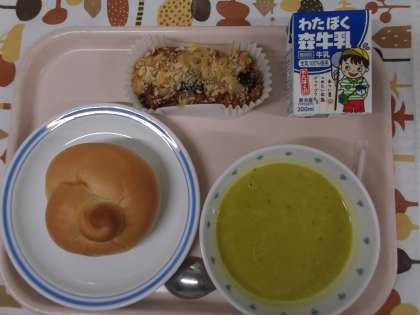 ミルクパン・なすミートグラタン・かぼちゃのポタージュ・牛乳
