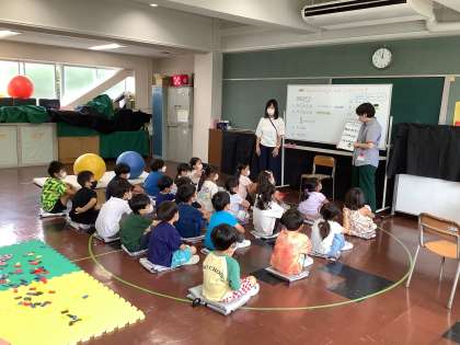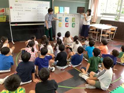 油面小学校には「なの花教室」があります。1年生の子供たちには、あまり馴染みがなく、知らない児童も多いため、なの花教室の先生方に体験を交えながら、教えていただきました。春には学校探検を行い、たくさんのことを知りましたが、また1つ油面小学校のことを知ることができました。