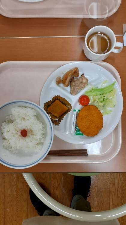 今日の夕食は、コロッケと鳥の照り焼きです。
