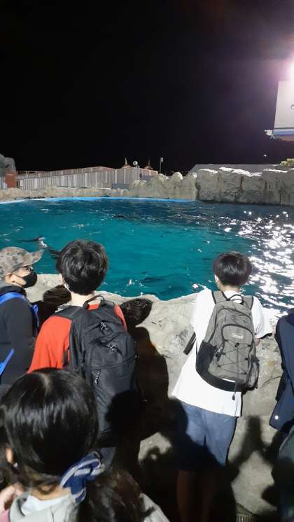 雨はあがり、鴨川シーワールドナイトアドベンチャーを楽しんでいます。