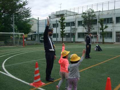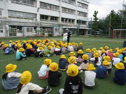 4月24日(月)に、目黒警察の方々に来ていただき、交通安全教室を実施しました。