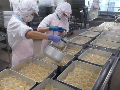 「給食アンサンブル」は5年生の子がおすすめした本です。6人の中学生が主役の6話の短編集です。各短編のタイトルが「黒糖パン」「ABCスープ」「七夕ゼリー」など給食のメニューで、それらのメニューが鍵となり物語が進みます。給食では、七夕は過ぎているので旬のりんごゼリーにしました。すりおろしたりんごを入れて食感も楽しめるようにしています。ABCスープは、アルファベット形のマカロニがたくさん入っています。自分の名前のスペルを見つけ出している子もいました。